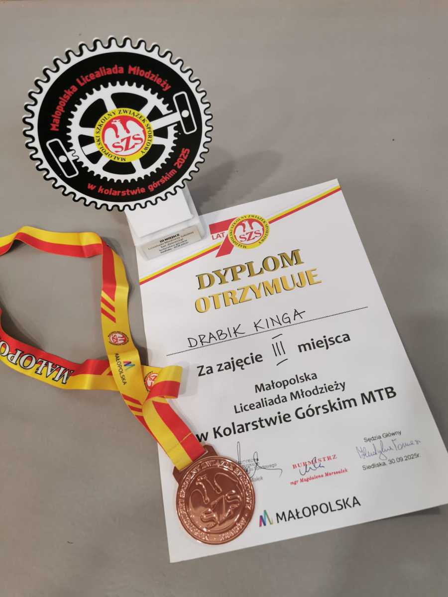 30 września 2025 roku w Siedliskach odbyła się wojewódzka licealiada w kolarstwo górskim. Nasza uczennica Kinga Drabik z klasy 1b, po zaciętej rywalizacji uplasowała się na miejscu 3!!! Wielkie brawa i gratulacje 👏 👏 👏